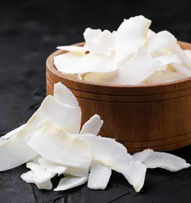 Chewy, slightly sweet coconut slices rich in fiber and healthy fats. Perfect for snacking, baking, or toppings.